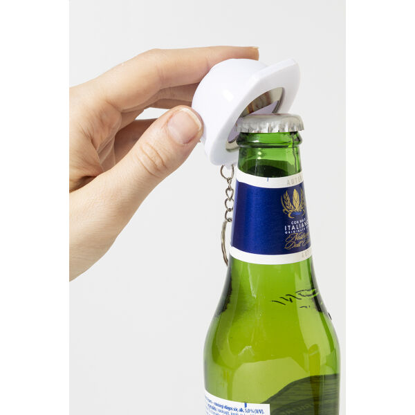 Gerecycleerde ABS veiligheidshelmvormige sleutelhanger met flesopener.