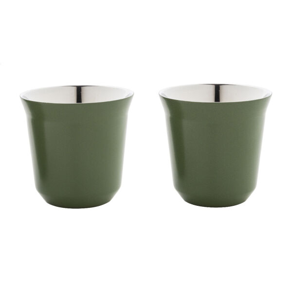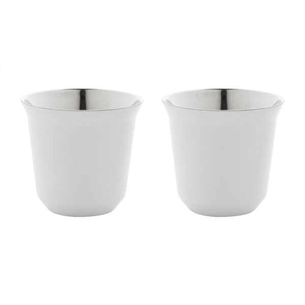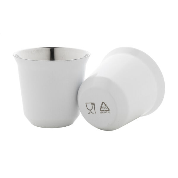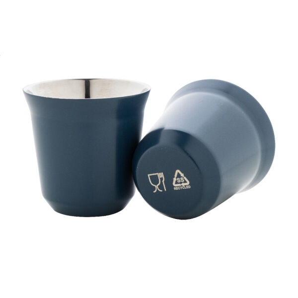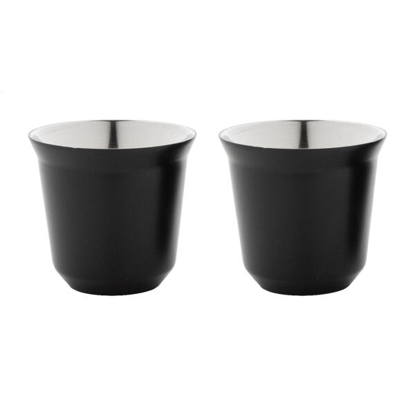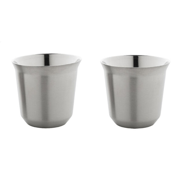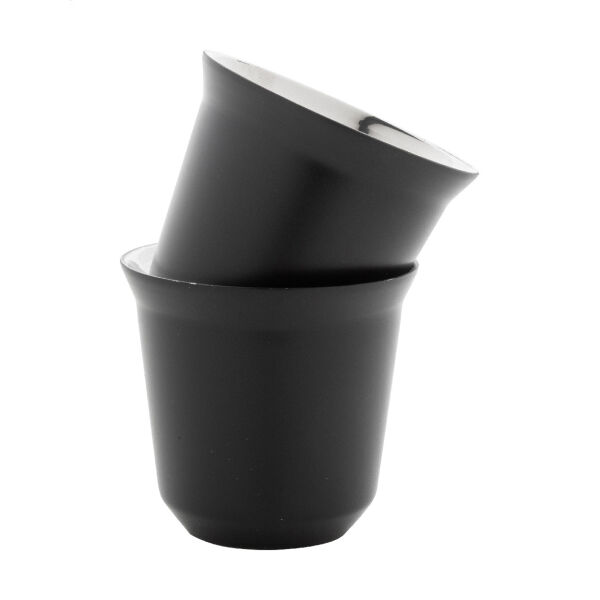 2 st espressokop set met koffiecapsule vormige dubbelwandige geïsoleerde thermokopjes in gerecycled roestvrij staal, 80 ml. In kraftpapier doos.