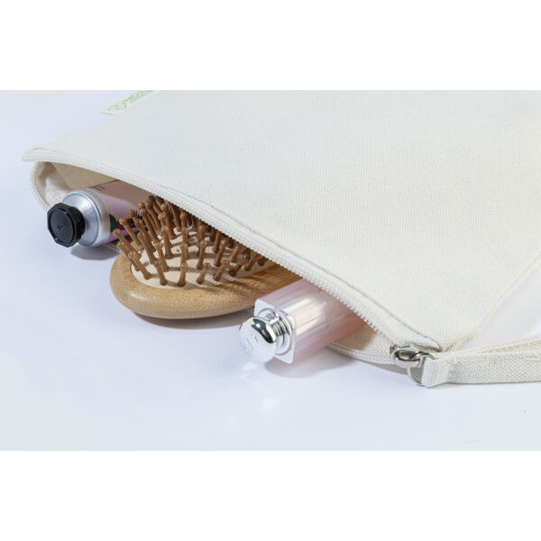 Make-up tasje met ritssluiting van 70% gerecycled katoen en 30% RPET-polyester, 280 g/m². Met onderscheidend gerecycled katoenen label.