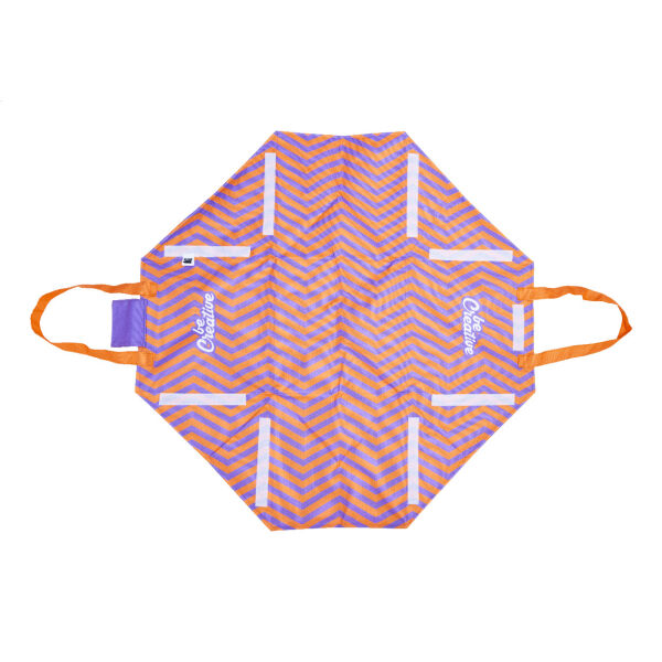 Custom made 600D RPET polyester koeltas met aluminium vulling, klittenbandsluiting en lange handgrepen. Fungeert ook als mand en kan worden uitgevouwen voor gebruik als picknickdeken. Met all-over sublimatie bedrukking en onderscheidend RPET-label. MOQ: 25 stuks.