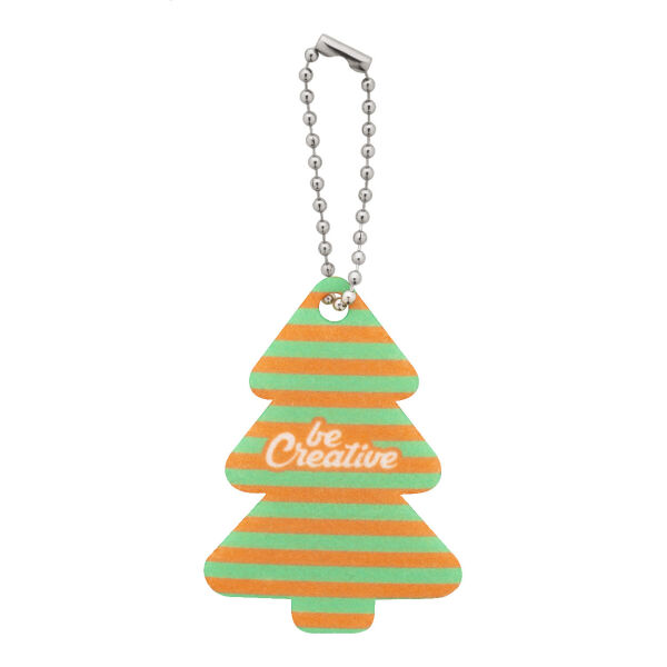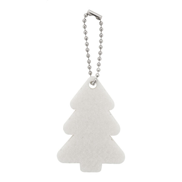 Custom made RPET vilten kerstsleutelhanger met metalen ketting en full colour bedrukking. Prijs is inclusief sublimatie bedrukking aan één zijde. MOQ: 100 stuks.