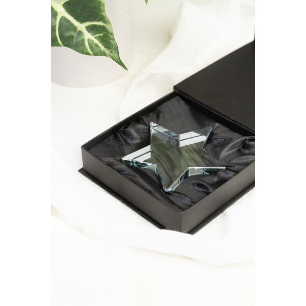 Stervormige glazen trofee, in zwarte geschenkdoos.
