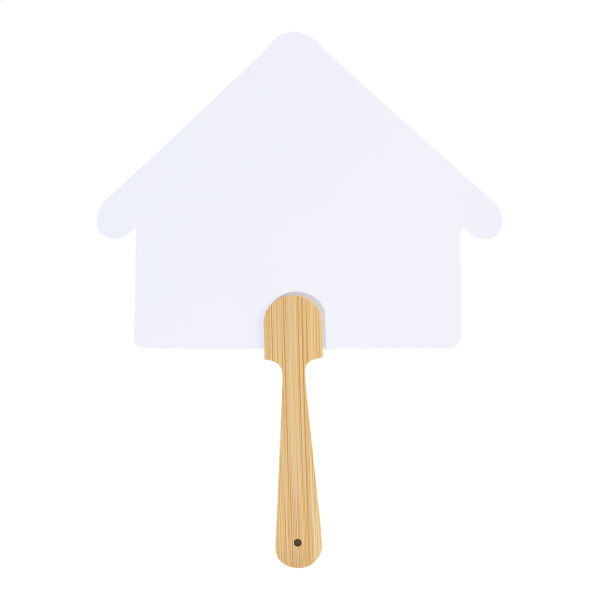 Custom made waaier met bamboe handvat en gelamineerd papier. Digitaal bedrukt met eigen design aan beide zijden. MOQ: 100 stuks.