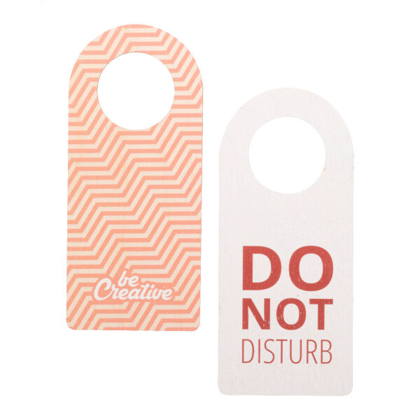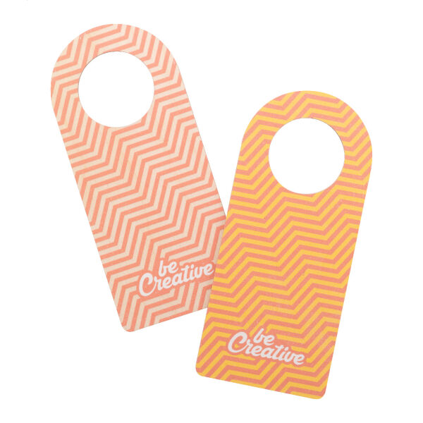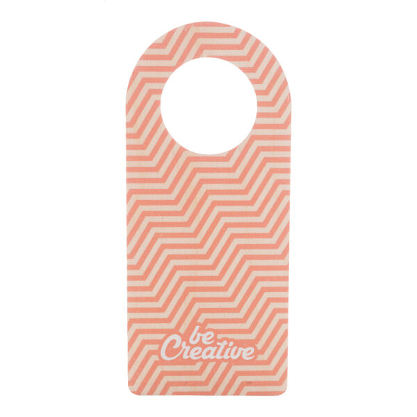 Custom made berken multiplex deurhanger met full colour graphics. Prijs is inclusief UV LED-printen aan beide zijden. MOQ 50 stuks.